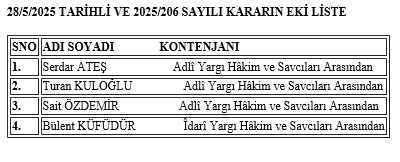 Cumhurbaşkanı Recep Tayyip Erdoğan'ın 28 Mayıs 2025 tarihli ve 2025/206 sayılı kararı ile HSK üyeliklerine şu isimler atandı:
